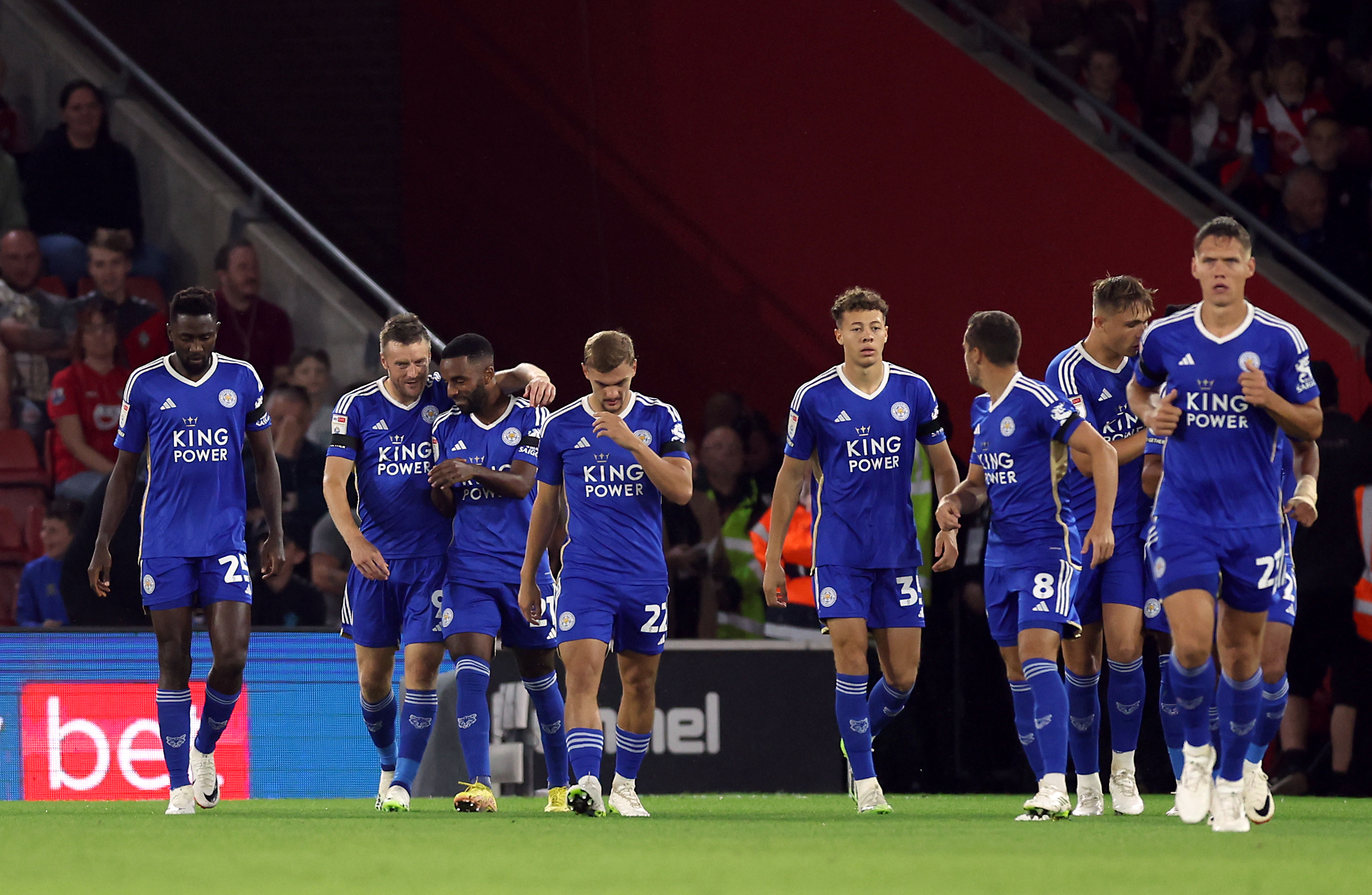 圣玛丽球场在过去的半个小时里开始空无一人,主队球迷错失了更多传球失误,客队的奥莱队和卡马尔丁·苏莱马纳被罚下场。这位边锋因在伤停补时阶段冲撞詹姆斯·贾斯汀而被直接出示红牌。