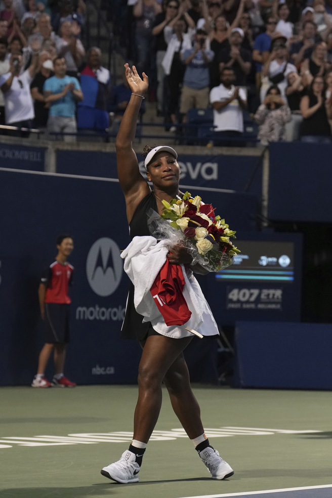 小威廉丝挥手向观众致意。罗杰斯盃网赛小威廉丝预告退休24小时后次轮出局